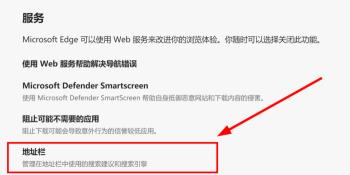 4. 在右边的“隐私与服务”界面拉动滚动条到最下方,找到“地址栏”并选择