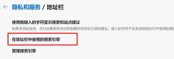 5. 然后在右侧打开的页面,找到“在地址栏中使用的搜索引擎”的选项