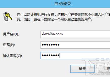 3.在弹出的“自动登录”窗口中,输入要自动登录的账号的名称和密码,点击【确定】,就可以取消Win10的开机登录密码了,以后开机就不用输入密码自动登录了,同时又保证了电脑面向网络的安全性。
