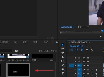 6.第六步,在下图所示的项目页面中,能够看到刚刚建立的字幕标题了,拖动字母标题到时间轴上。