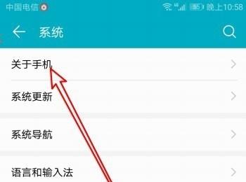 3.第三步,在下图所示的系统页面中,点击箭头所指的关于手机选项。