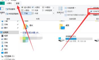 5. 然后在打开的查看选项下,找到右侧的”文件扩展名“选项,在前面打上勾。
