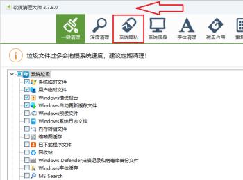 3. 在打开的页面,上方切换到【系统隐私】选项。