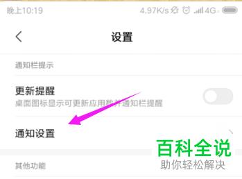 4. 第四步进入【设置】页面后,根据下图箭头所指,点击【通知设置】选项。