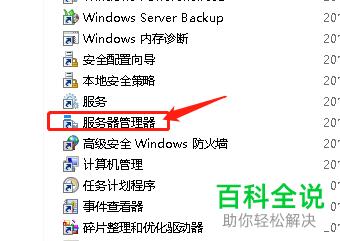 3. 进入管理工具页面后,找到服务器管理器的消息,点击;