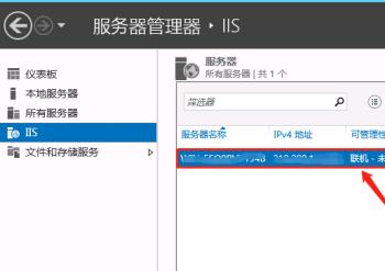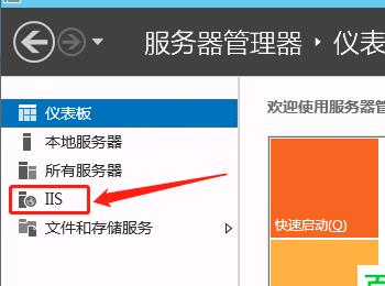 4. 在打开的服务器管理器页面,点击左侧的IIS选项;