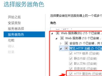 7. 接下来,进入选择服务器角色的角色窗口中,找到HTTP重定向选项;
