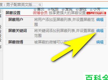 5. 第五步打开【屏蔽设置】窗口后,点击【屏蔽关键词】后的【编辑】选项。
