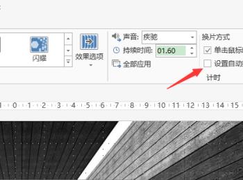 4. 第四步根据下图箭头所指,勾选【设置自动换片时间】,并按照需求在右侧方框中输入时间。