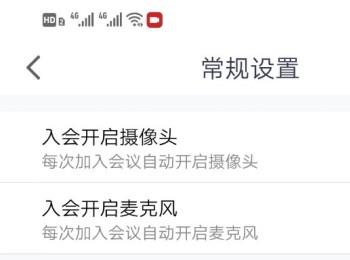 6.第六步,在下图所示的常规设置界面中,根据自己的需求,来打开或者关闭入会议后自动开启摄像头或者麦克风右边的开关。