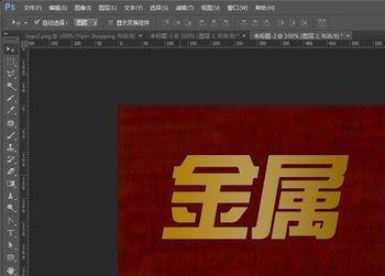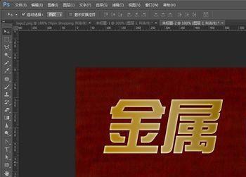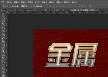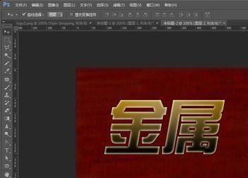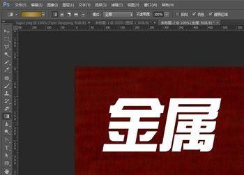首先我们新建一个600*400的画布,然后找一个深红色的背景,或者直接填充一个深红色的背景色。用文本工具在画布中间写上“金属”两个字。