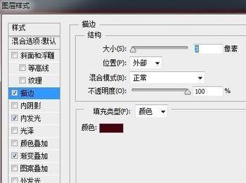 双击图层2,打开图层样式,选择描边,调整结构大小3像素,填充颜色#45010d,其它选项默认