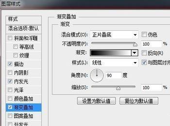 选择渐变叠加,选择黑白渐变,角度90度, 混合模式正片叠底,其它选项默认