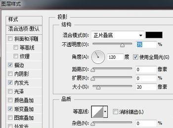选择投影,距离0,扩展0,大小20,其它选项默认