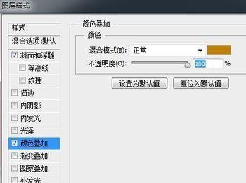 选择颜色叠加,调整叠加颜色为#c18004,其它选项默认