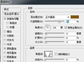 选择投影,设置阴影颜色为:#855604,设置等高线为反转,其它选项默认