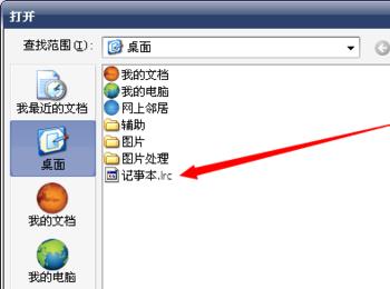 打开,选中刚才放在桌面的歌词文件即可