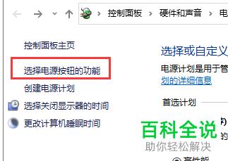 4. 第四步在弹出的窗口中,根据下图所示,点击左侧【选择电源按钮的功能】选项。