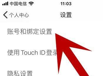 4. 第四步,我们可以看到如下图所示的设置页面,点击箭头所指的账号与绑定设置选项。