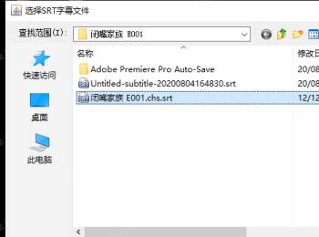 6.然后在打开的窗口中,选择刚才在PR软件出现问题的.srt字幕文件,点击右下角的打开按钮,