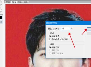 4.第四步,我们可以看到如下图所示的弹出窗口,点击箭头所指的优化文件大小选项。