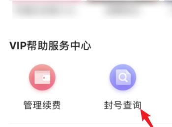 3. 第三步在跳转的页面中,根据下图箭头所指,点击【封号查询】选项。
