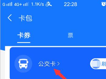 2. 在打开的卡包页面,点击公交卡选项
