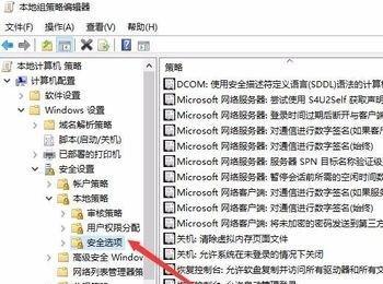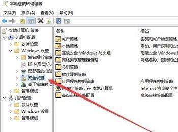 3、在打开的本地组策略编辑器窗口中,依次展开:计算机配置/Windows设置/安全设置折叠菜单;