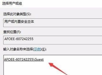11、在打开的选择用户或组窗口中输入用户名guest,然后点击右侧的“检查名称”,即可自动填写其全部路径,最后点击确定按钮;