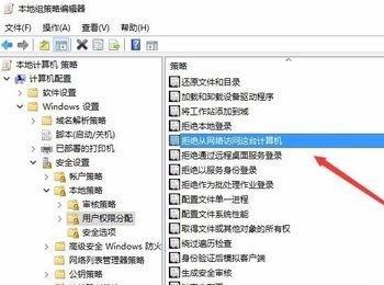 13、在用户权限分配菜单下,可以找到“拒绝从网络访问这台计算机”策略;