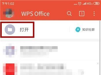1. 首先,请大家在自己的手机中找到【WPS office】图标,点击进入主界面,然后选择顶部的【打开】按钮。