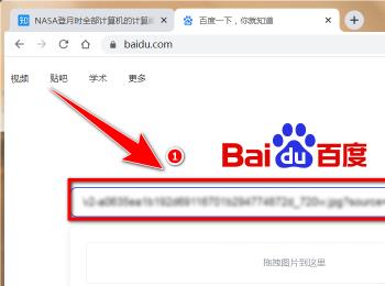 4. 第四步根据下图箭头所指,先将复制的图片地址粘贴到方框中,接着点击右侧【百度一下】选项。