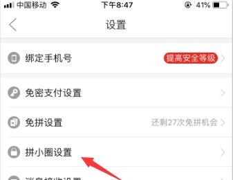 4. 进入设置页面后,找到“拼小圈设置”选项,打开。