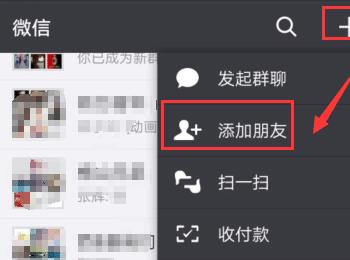 1、打开微信,进到主页,点击+号,选择添加朋友,如下图所示