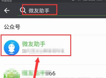 3、在搜索框中输入微友助手,如下图所示,点击第一个微友助手进去即可