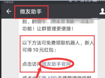 5、进入到微友助手公众号界面,如下图所示,点击进入官网看看