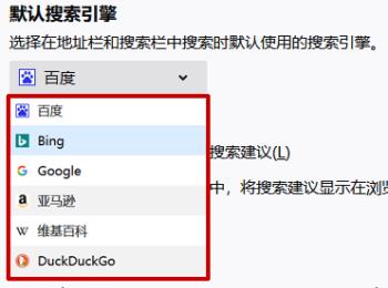 5. 最后在弹出的菜单栏中,根据下图所示,按照需求选择想要设置的搜索引擎即可。