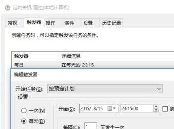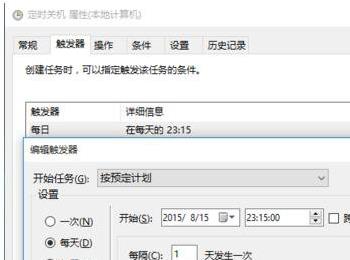 5、转到触发器选项卡中,新建触发器,弹出触发器设置窗口,设置如下图所示。
