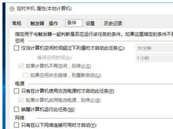 7、条件和设置选项卡,分别如下两图所示。为此定时休眠任务计划已经设置好,点击确定返回“任务计划程序库”窗口,可以看见刚才创建的任务,并右击启用该任务。每次到刚才设置的时间,计算机就会自动进入休眠状态(与关机类似,计算机此时并不耗电)。