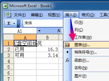 2、点击菜单[插入]->[图表]