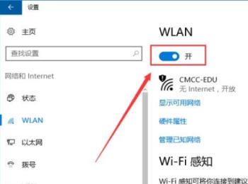 4. 第四步在右侧页面中,根据下图箭头所指,将【WLAN】选项设置为【开】。