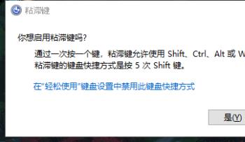 1. 首先第一步根据下图所示,如果弹出了【沾滞键】窗口,则点击【在【"轻松使用"键盘设置中禁用XXX】选项,接着查看第五步。