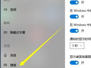 5. 第五步进入【轻松使用】页面后,根据下图箭头所指,点击【键盘】选项。