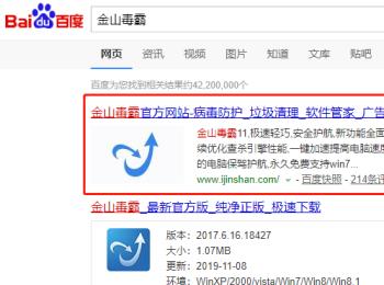 1. 打开电脑上的浏览器,进入百度,输入“金山毒霸”进行搜索。进入金山毒霸官网后,点击“下载毒霸”,进行下载安装
