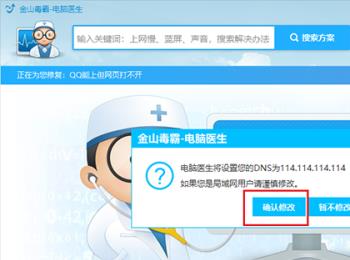 5. 接下来,在打开的页面,点击立即修复的按钮,然后在弹出的窗口中,点击确认修改,进行修复DNS。