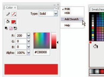 使用混合面板右上角的下拉菜单,添加一个新的颜色样品。一个非主流的添加样品的方法是将光标停留在现有样品面板底部的空白处,你的光标将自动变为油漆桶,当点击空白处的任何地方,当前颜色将被添加到样品中。