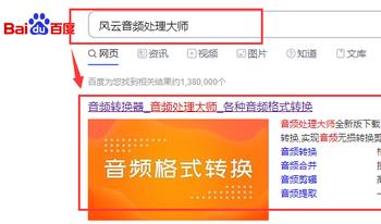 1. 首先打开电脑上的浏览器,进入百度页面,输入“风云音频处理大师”,进行搜索,然后点击进行下载安装。