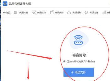 3. 接着在打开的页面,点击中间的“添加文件”按钮,将我们的音频导入软件中,若想要进行批量处理,可以点击左下方的“添加文件夹”进行批量导入。