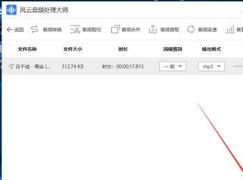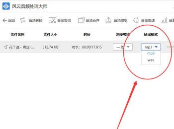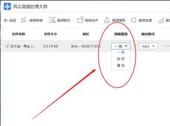 5. 音频导入之后,点击“消噪级别”下的下拉菜单,在打开的菜单中,选择想要的级别,然后选择”输出格式“,一般选择默认的mp3格式,也可以选择wav的格式。