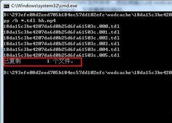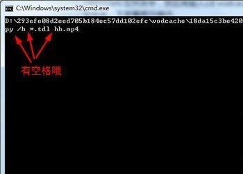 接下来的就是最关键的,输入代码的时候,空格之类的不要点错哦!下面我们要做的就是合并文件,要用到copy命令,要合并的成的视频暂且命名为 hb.mp4吧,因为文件都是 .tdl 格式的,所以这里的 *.tdl 就全部代表了,下面看代码吧